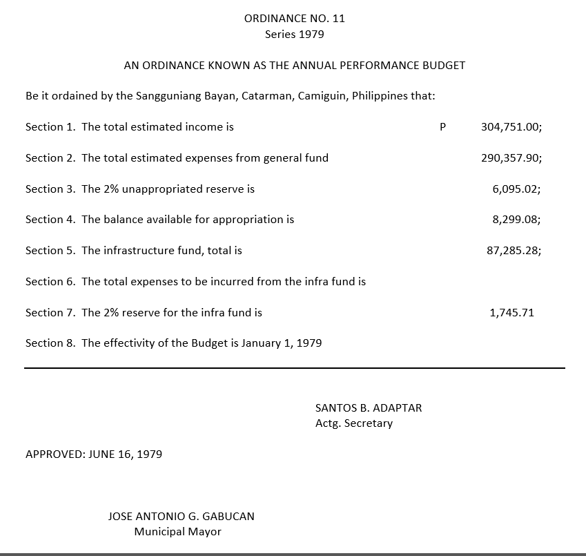 - 1992 Ordinance No. 2 - ₱38,250 for Barangay Officials Seminar